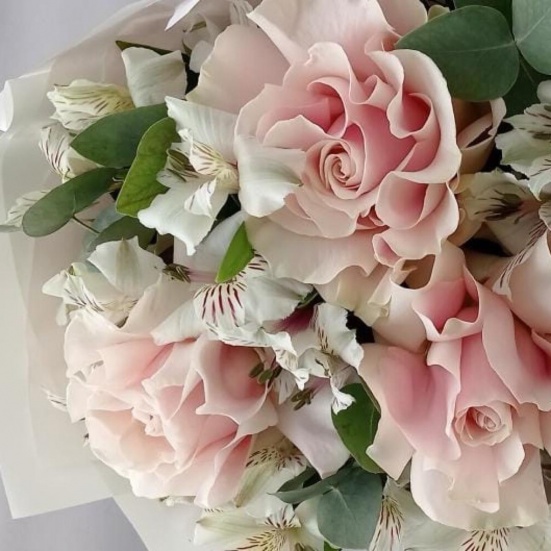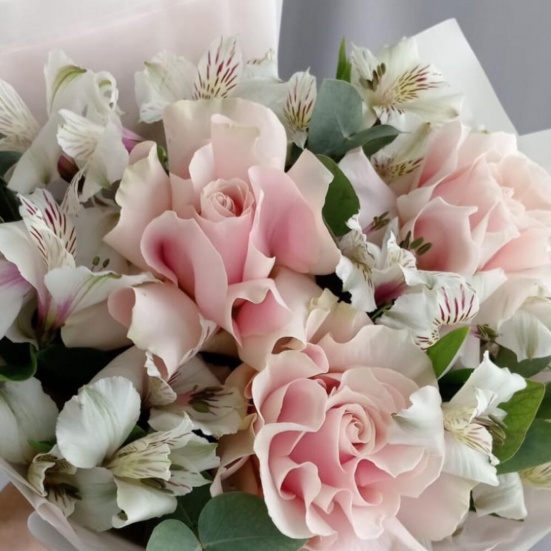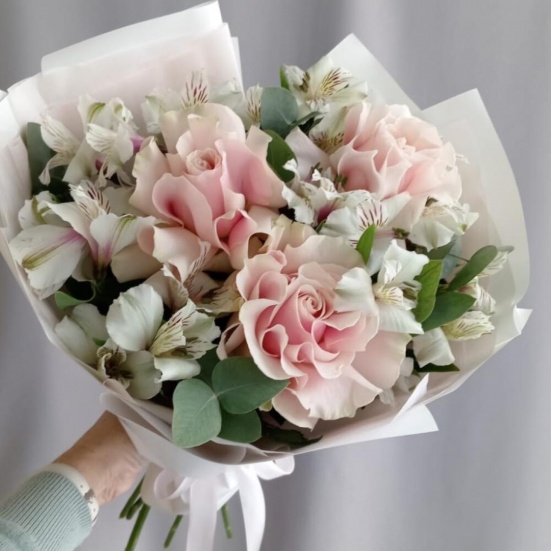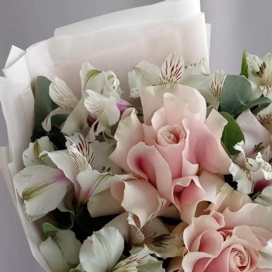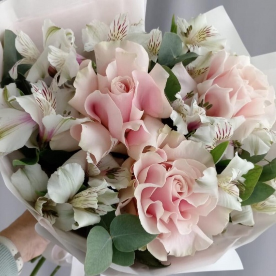 Букет из 3 французских роз и Альстромерии в Пушкино