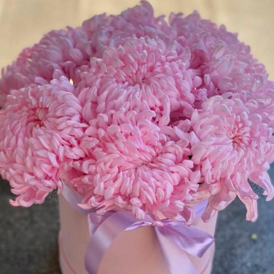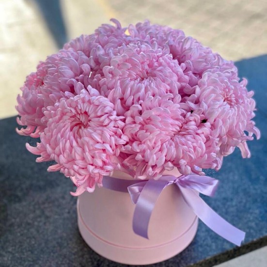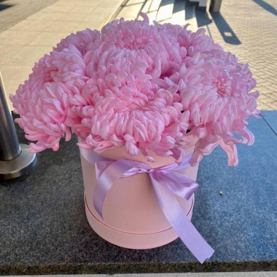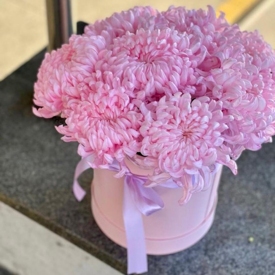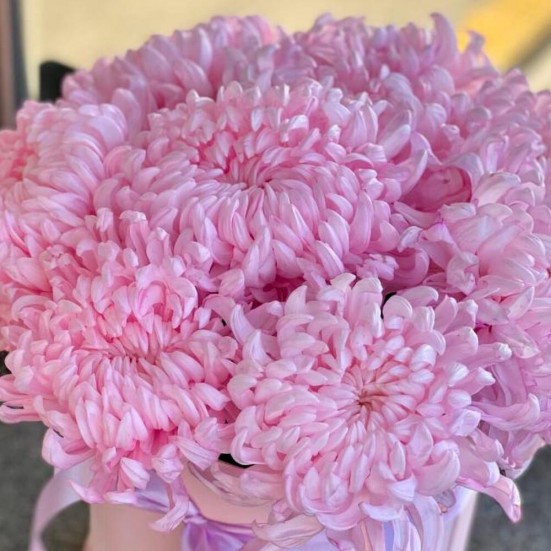 9 розовых хризантемы в коробочке в Пушкино