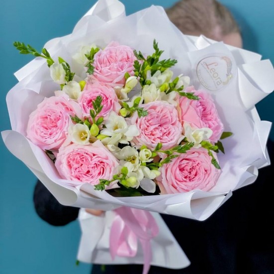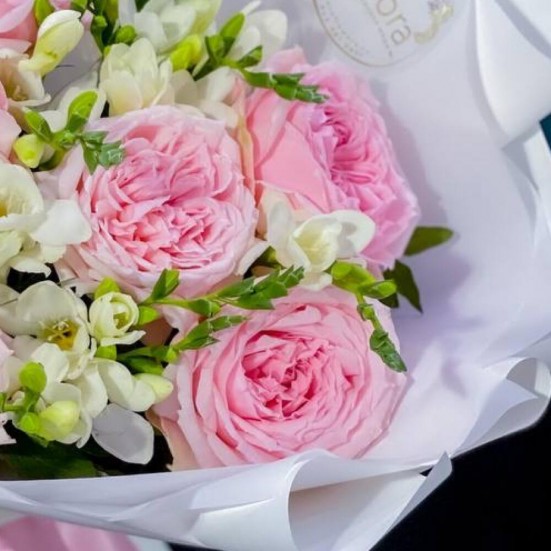 Букет «Пионовидные розы и фрезия» в Пушкино