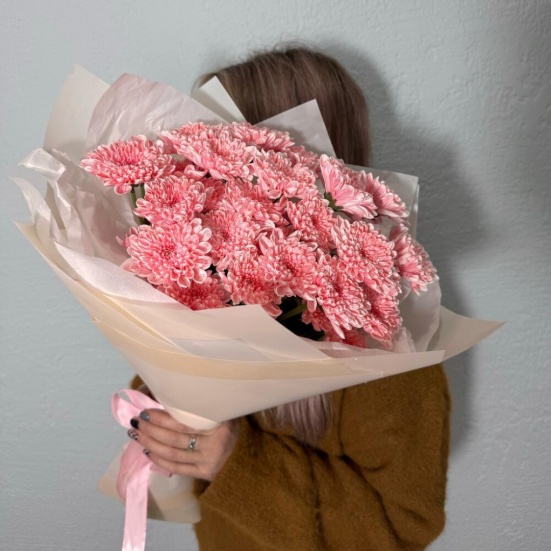 Букет из 5 персиковых хризантем в Пушкино