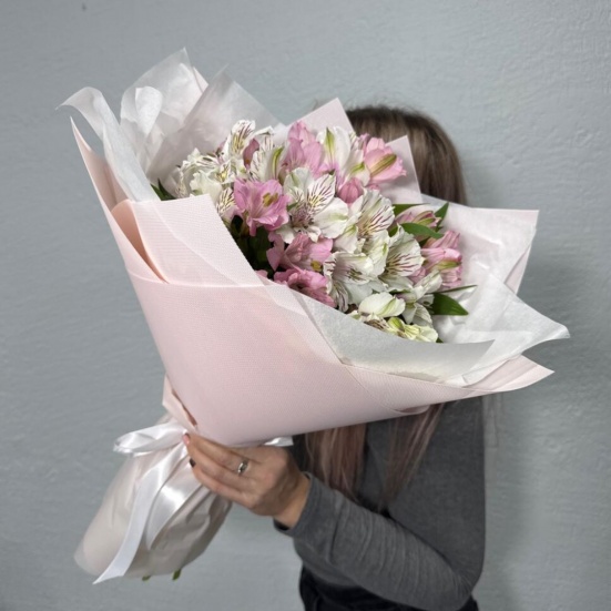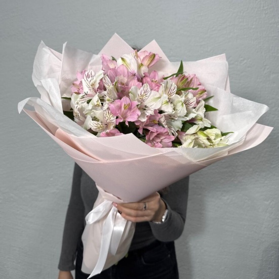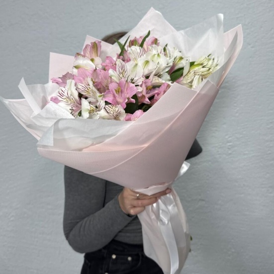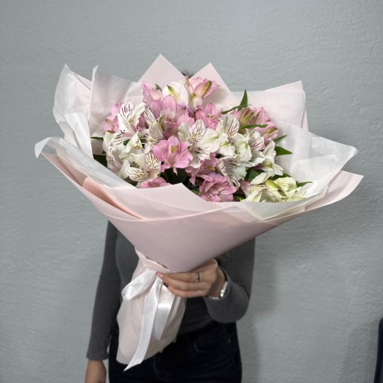 Букет из микс альстромерий белых и розовых в Пушкино
