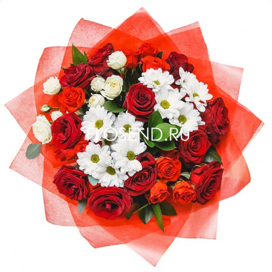 Букет из красных роз и хризантем в Пушкино