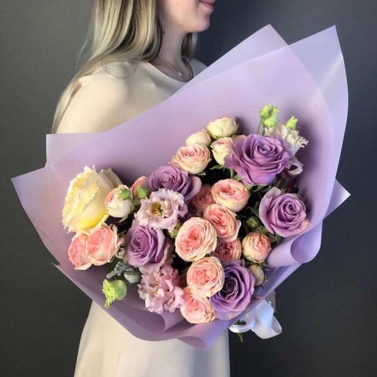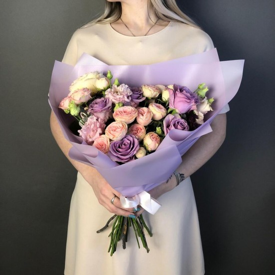 Букет «Эустома и розы пионовидные» в Пушкино