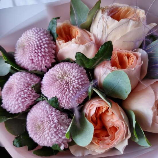 Букет «Пионы и хризантема»