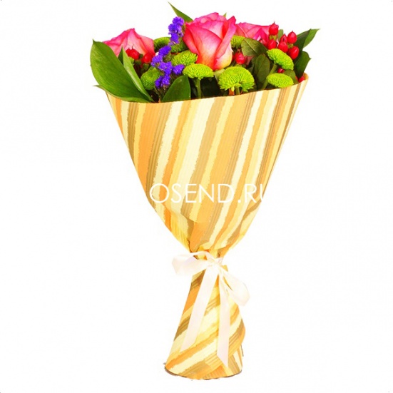 Букет из роз и хризантем и зелени