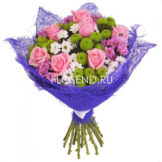 Букет из розовых роз и хризантем