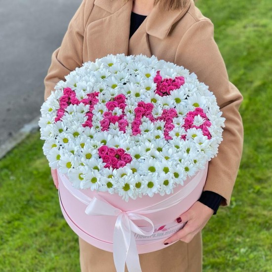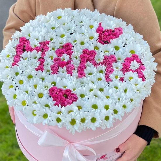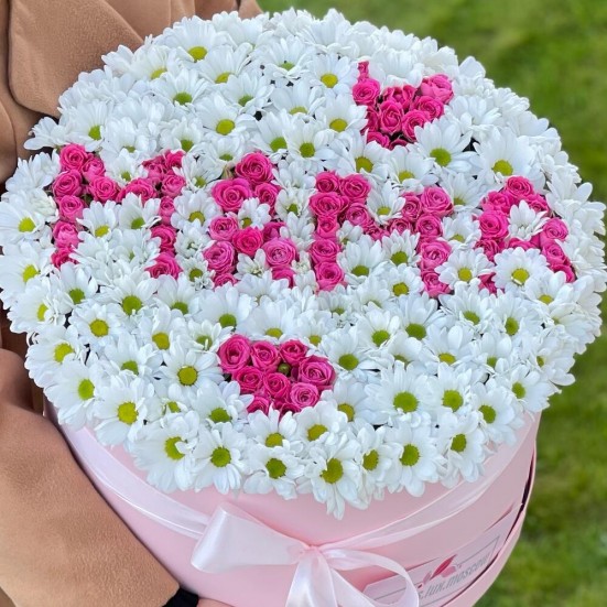 Хризантема ромашковая и роза в коробке Маме в Пушкино