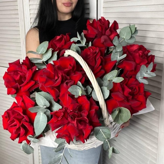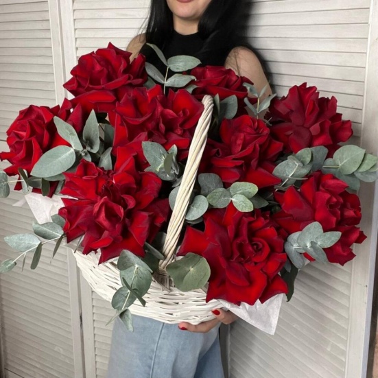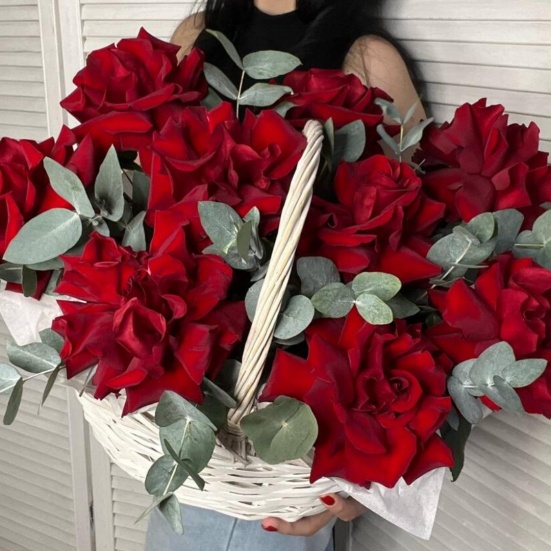 Корзина из 9 красных французских роз